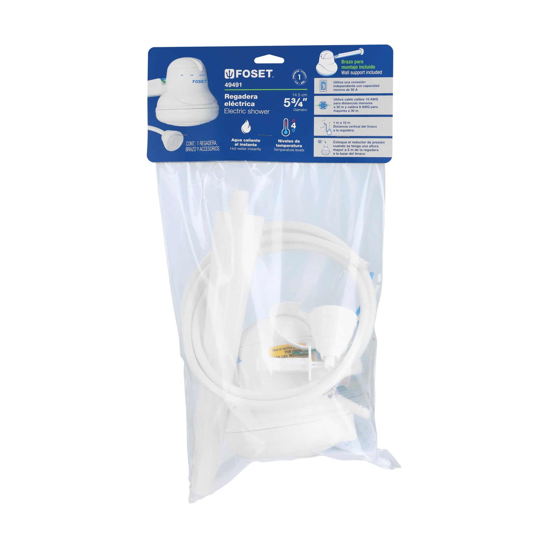 Foset Electric Shower Head - Instant Hot Water, 4 Temperature Settings, Hand Shower Head with 5 ft Hose Included (Model 49491)