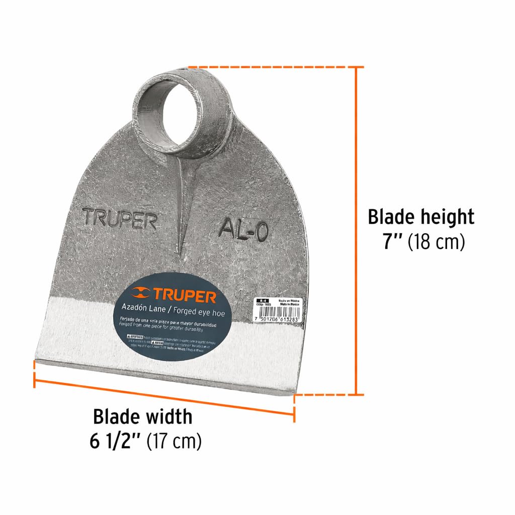 Truper Lane Hoe Head No. 0, 6-1/2-Inch x 7-Inch Forged Head, 38-39 mm Tapered Cone, 1.6 lb Head Weight, No Handle (Model AL-0/10600)