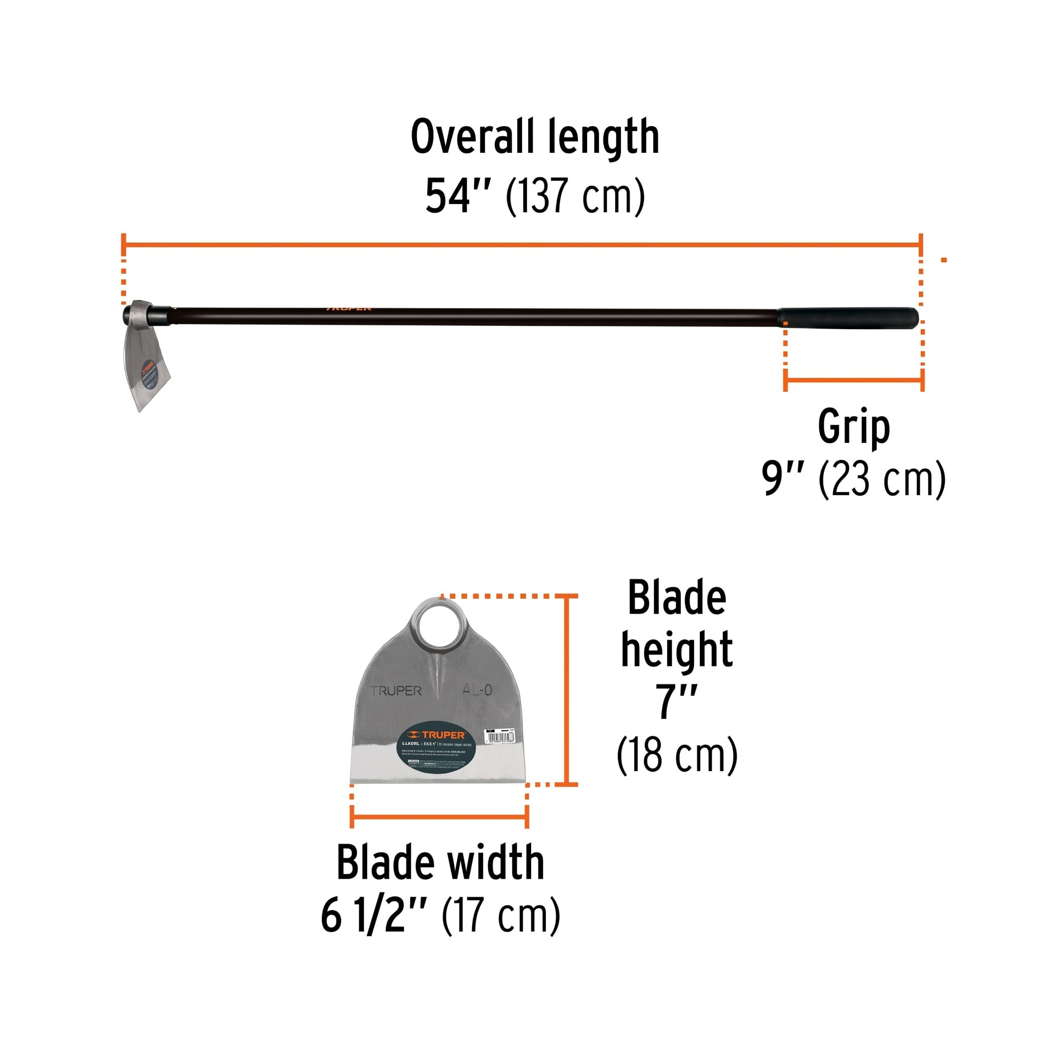 Truper Lane No. 0 Field Hoe, 1.6 lb Forged Steel Head, 54-Inch Wood Handle, Heavy-Duty Agricultural and Landscaping Hoe (Model 10612)