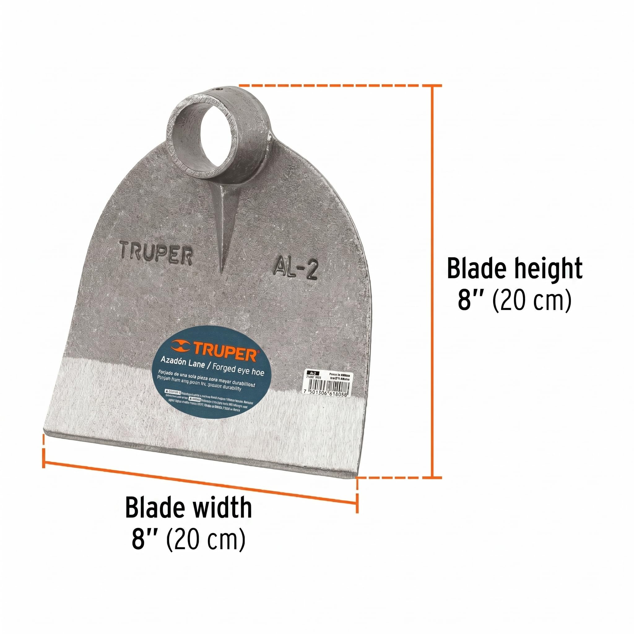 Truper Lane No. 2 Field Hoe Head, 2 lb Forged Steel, Heavy-Duty Replacement Hoe Head for Agriculture and Landscaping (Model AL-2/10606)